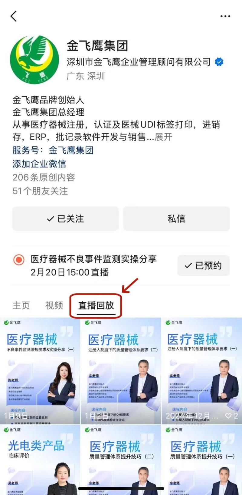 劃重點往期直播培訓課程支持回放,關注“金飛鷹藥械咨詢服務”視頻號并點擊視頻號主頁,即可查看“直播回放”哦~