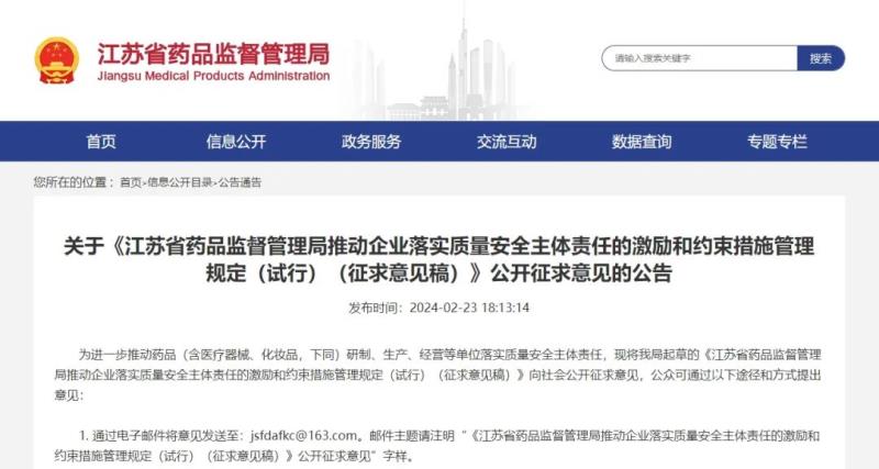 近日,江蘇省藥監(jiān)局發(fā)布《江蘇省藥品監(jiān)督管理局推動(dòng)企業(yè)落實(shí)質(zhì)量安全主體責(zé)任的激勵(lì)和約束措施管理規(guī)定(試行)(征求意見稿)》(以下簡(jiǎn)稱《管理規(guī)定》),擬對(duì)“兩品一械”企業(yè)進(jìn)行質(zhì)量安全評(píng)級(jí)管理,并向社會(huì)公開征求意見。