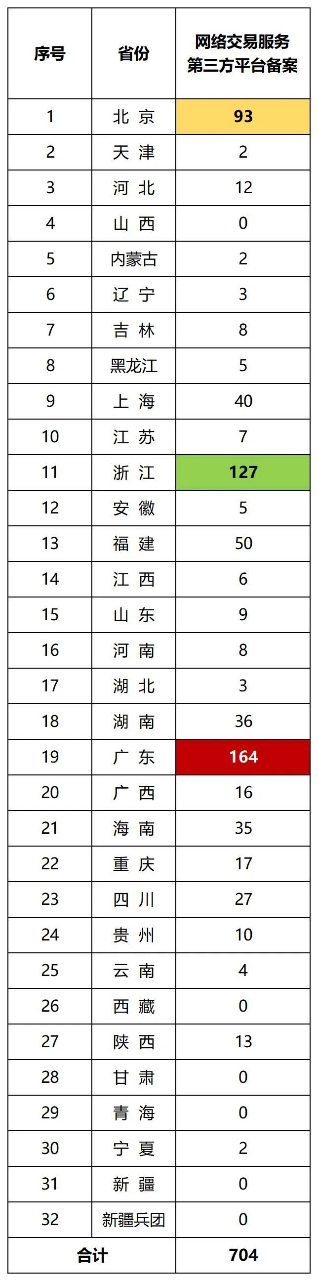 據(jù)國家藥監(jiān)局統(tǒng)計,截至2023年2月28日,我國各省醫(yī)療器械醫(yī)療器械網(wǎng)絡(luò)交易服務(wù)第三方平臺數(shù)據(jù)如下: