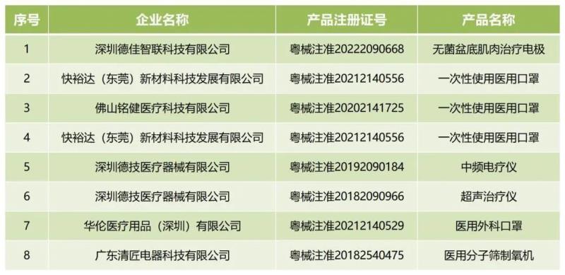 近日,廣東省藥監(jiān)局官網(wǎng)發(fā)布通告稱,按照《醫(yī)療器械注冊管理辦法》的規(guī)定,根據(jù)企業(yè)申請,廣東省藥品監(jiān)督管理局已依法注銷“粵械注準20222090668”等8個醫(yī)療器械注冊證,其中包括超聲治療儀、無菌盆底肌肉治療電極、一次性使用醫(yī)用口罩等產(chǎn)品,具體明細如下: