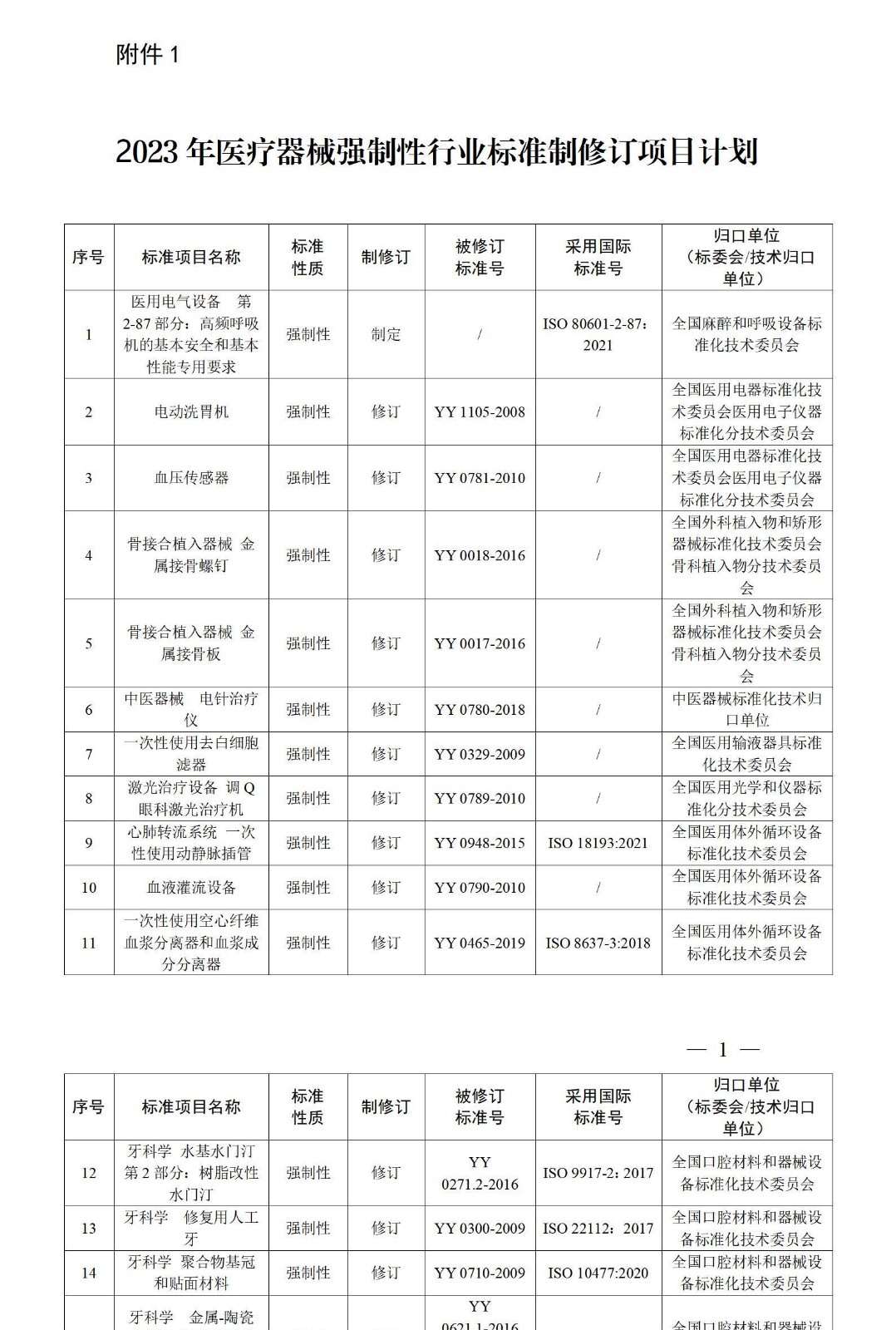 近日,國(guó)家藥監(jiān)局官網(wǎng)發(fā)布2023年醫(yī)療器械行業(yè)標(biāo)準(zhǔn)制修訂計(jì)劃,其中包括15項(xiàng)強(qiáng)制性標(biāo)準(zhǔn)(1項(xiàng)制定14項(xiàng)修訂)102項(xiàng)推薦性標(biāo)準(zhǔn)(56項(xiàng)制定46項(xiàng)修訂),具體如下