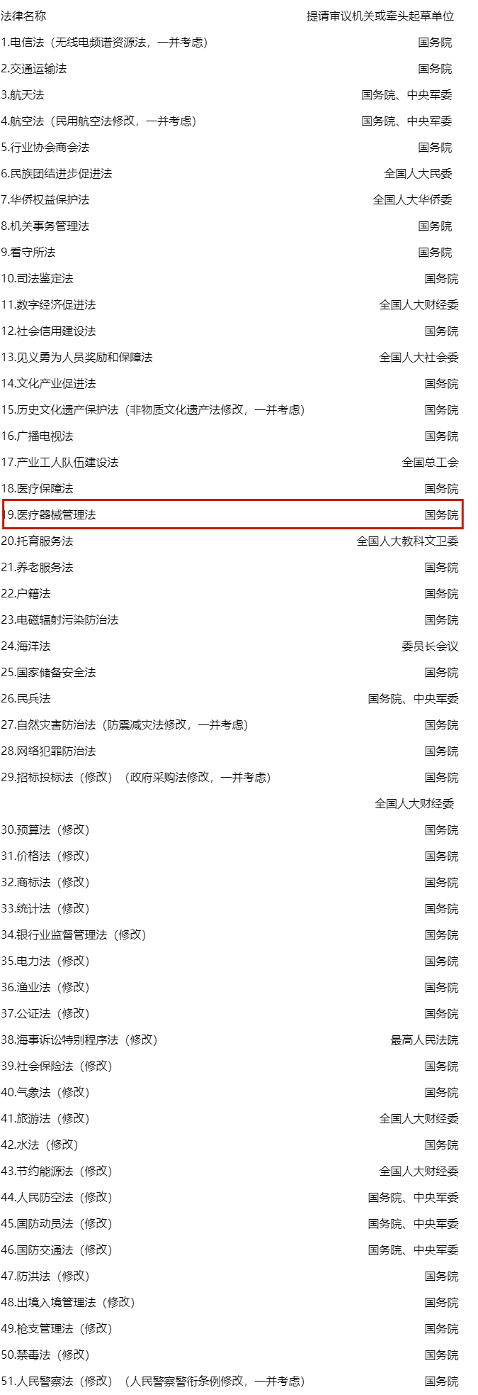 近日,《十四屆全國人大常委會立法規(guī)劃》公布,在第二類“需要抓緊工作、條件成熟時提請審議的法律草案”項目中,醫(yī)療器械管理法首次被列入立法規(guī)劃。