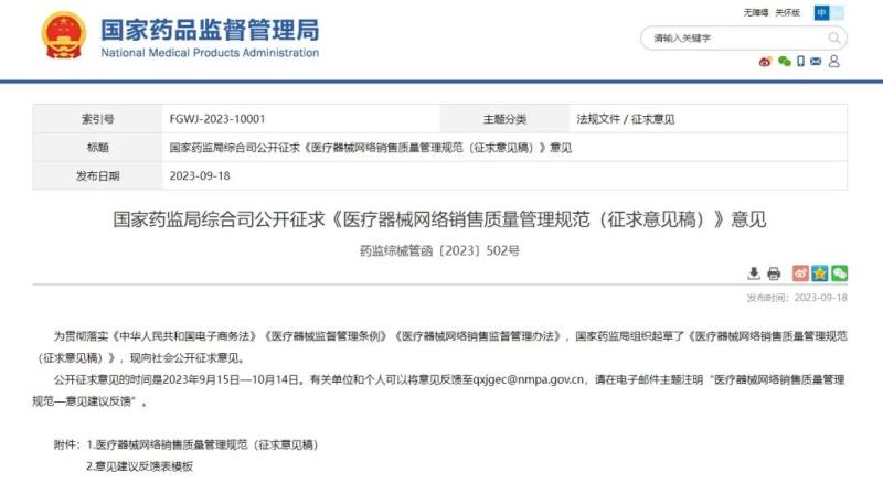 《醫(yī)療器械網(wǎng)絡(luò)銷售質(zhì)量管理規(guī)范》征求意見中!