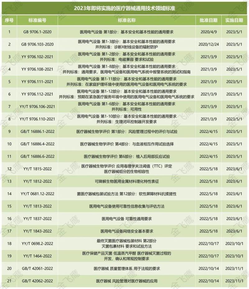 由于行業(yè)發(fā)展的需要及監(jiān)管工作需求,各項標準也在不斷修訂中,比如我們經(jīng)常跟大家講的新版GB 9706系列標準,還有新版生物學(xué)評價GB/T 16866系列標準,都將于2023年5月1日起正式實施,除此之外還有6月1日及10月1日起實施的相關(guān)標準,那么今天我們就把2023年即將實施的醫(yī)療器械通用技術(shù)領(lǐng)域相關(guān)標準做了一個匯總(包括強制性標準和推薦性標準),大家記得收藏備用哦!