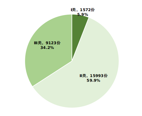 ? 附圖:涉及北京市醫(yī)療器械注冊(cè)人、備案人、進(jìn)口醫(yī)療器械代理人的報(bào)告按器械管理類別統(tǒng)計(jì)情況