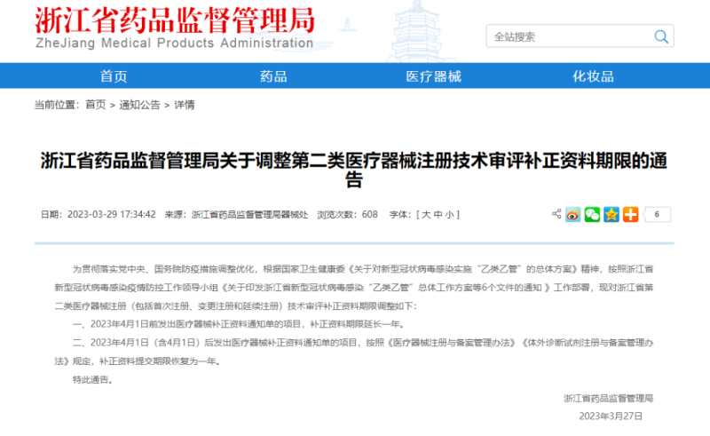 一、2023年4月1日前發(fā)出醫(yī)療器械補(bǔ)正資料通知單的項(xiàng)目,補(bǔ)正資料期限延長(zhǎng)一年。