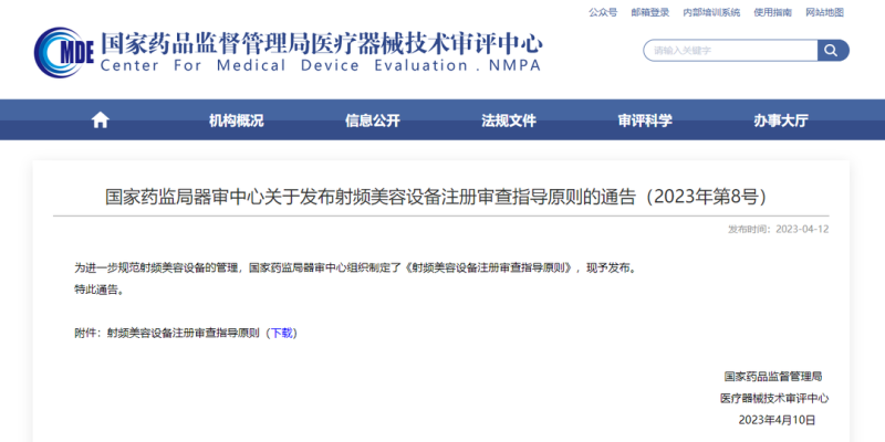 4月12日,國家藥監(jiān)局器審中心在原有征求意見稿基礎(chǔ)上正式發(fā)布《射頻美容設(shè)備注冊審查指導(dǎo)原則》,我們將部分重點內(nèi)容摘錄如下: