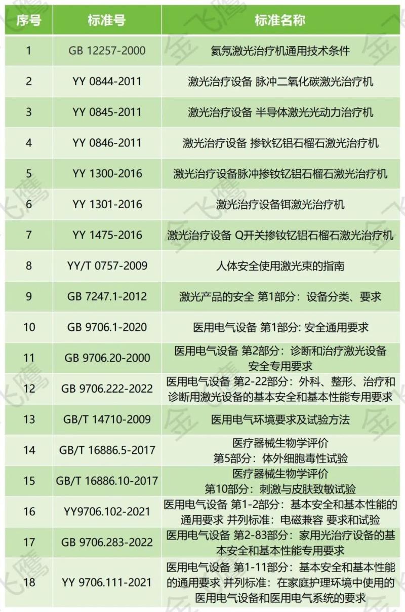 激光醫(yī)美產(chǎn)品的技術(shù)指標(biāo)可參考指導(dǎo)原則和相關(guān)的標(biāo)準(zhǔn)進行制定,根據(jù)工作物質(zhì)性質(zhì)的不同有不同的產(chǎn)品標(biāo)準(zhǔn),參考標(biāo)準(zhǔn)清單大致如下: