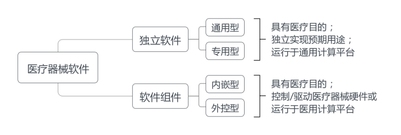 醫(yī)療器械軟件包括本身即為醫(yī)療器械的軟件或者醫(yī)療器械內(nèi)含的軟件,前者即醫(yī)療器械獨(dú)立軟件(簡稱獨(dú)立軟件),后者即醫(yī)療器械軟件組件(簡稱軟件組件)。