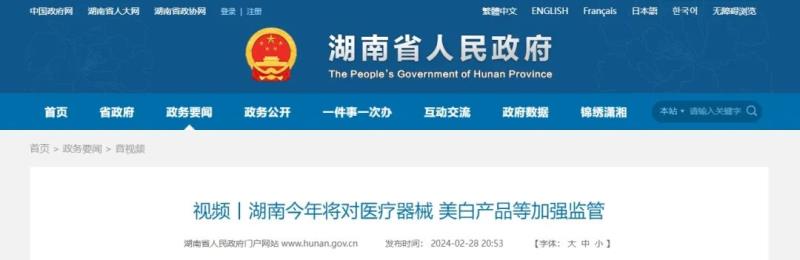 2月28日,湖南省人民政府發(fā)布一則視頻,其中提到,據(jù)湖南省藥品監(jiān)管局發(fā)布,今年(2024年),全省藥品監(jiān)管部門將聚焦突出問(wèn)題和薄弱環(huán)節(jié),堅(jiān)持對(duì)生化藥品、兒童用藥、防疫用藥、集采中選藥品和醫(yī)療器械、美白產(chǎn)品重點(diǎn)品種、重點(diǎn)企業(yè)、重點(diǎn)環(huán)節(jié)加強(qiáng)監(jiān)管。