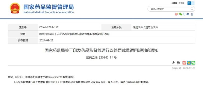 近日,國(guó)家藥監(jiān)局發(fā)布《藥品監(jiān)督管理行政處罰裁量適用規(guī)則》(以下簡(jiǎn)稱《規(guī)則》),并宣布2024年8月1日起施行。