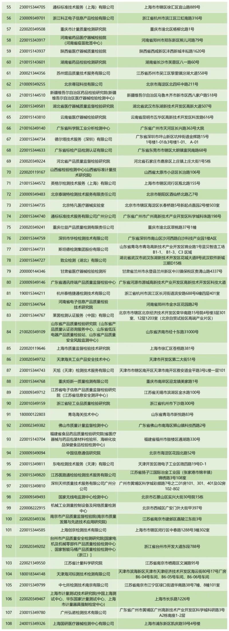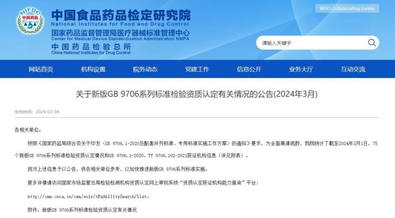 3月4日,中檢院官網(wǎng)公布了截至2024年3月1日,75個(gè)新版GB 9706系列標(biāo)準(zhǔn)檢驗(yàn)資質(zhì)認(rèn)定情況和GB 9706.1-2020、YY 9706.102-2021獲證機(jī)構(gòu)信息。我們從附件表格中可以看到,全國(guó)共有108家GB 9706.1-2020資質(zhì)認(rèn)定獲證機(jī)構(gòu),也就是說(shuō),可以承擔(dān)新標(biāo)的安規(guī)檢測(cè)工作,具體如下: