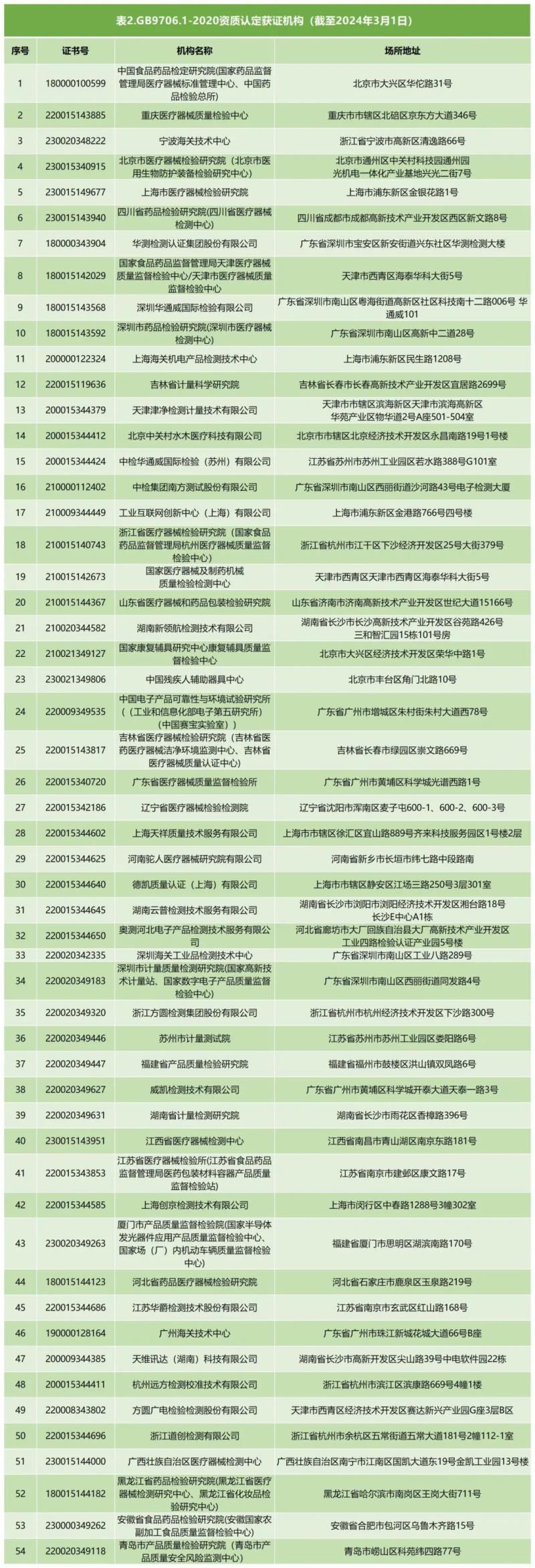 截至3月1日,全國(guó)共有108家新版GB 9706.1資質(zhì)認(rèn)定獲證機(jī)構(gòu)