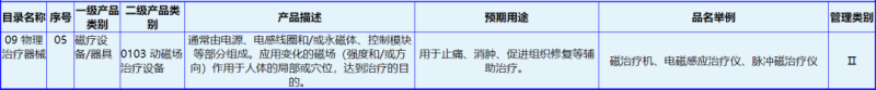跟穴位磁療貼一樣,磁場綜合治療系統(tǒng)也是屬于磁療產(chǎn)品這個(gè)大類,它在我國作為第二類醫(yī)療器械管理,產(chǎn)品分類編碼09-05-01。