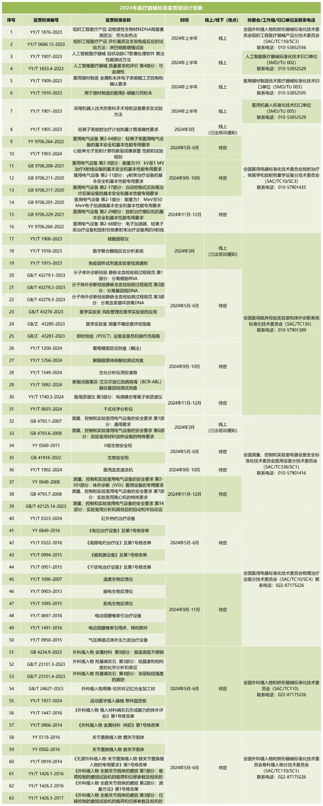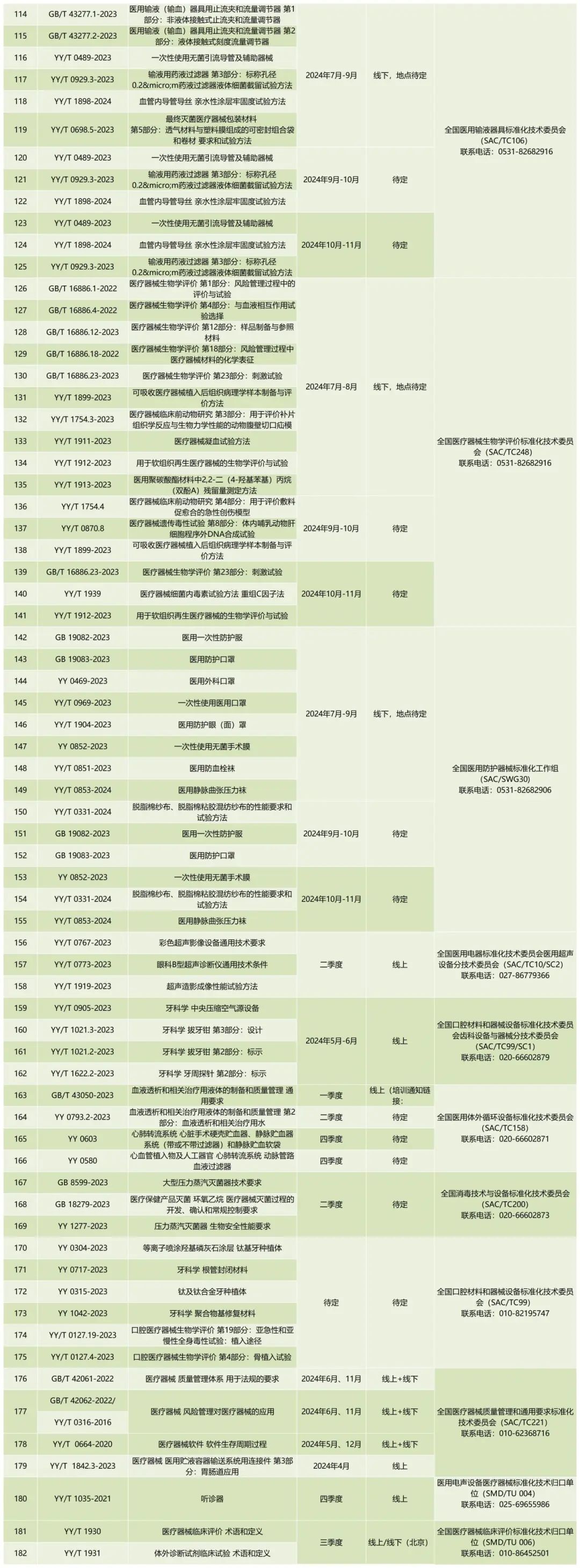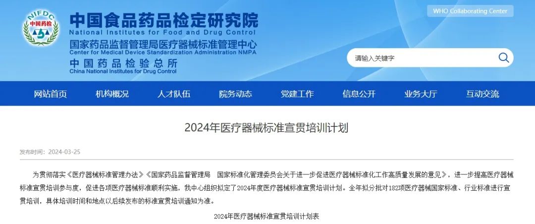 3月25日,國家藥監(jiān)局醫(yī)療器械標準管理中心發(fā)布《2024年醫(yī)療器械標準宣貫培訓(xùn)計劃》,擬分批對182項醫(yī)療器械國家標準、行業(yè)標準進行宣貫培訓(xùn),具體安排如下: