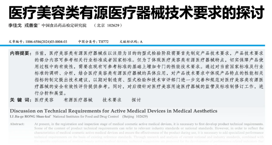 近期,《中國醫(yī)療器械信息》雜志刊登了一篇文章《醫(yī)療美容類有源醫(yī)療器械技術(shù)要求的探討》,從市場趨勢、現(xiàn)有標(biāo)準(zhǔn)情況、體現(xiàn)產(chǎn)品臨床特點(diǎn)的技術(shù)指標(biāo)研究、展望與技術(shù)探討等方面對有源醫(yī)美產(chǎn)品進(jìn)行了探討,本期文章我們摘錄了其中部分內(nèi)容跟大家進(jìn)行簡單分享。