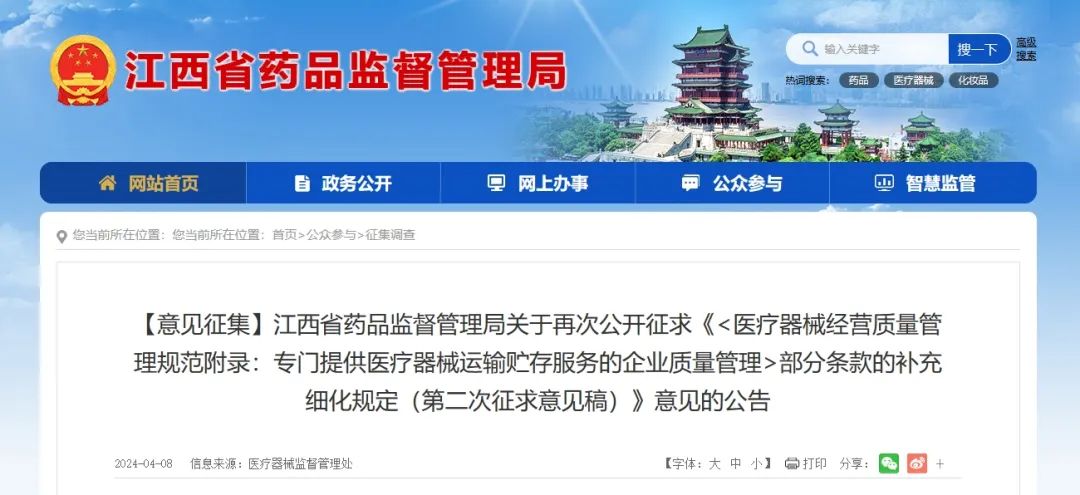 4月8日,江西省藥監(jiān)局發(fā)布《醫(yī)療器械經(jīng)營質量管理規(guī)范附錄:專門提供醫(yī)療器械運輸貯存服務的企業(yè)質量管理部分條款的補充細化規(guī)定(第二次征求意見稿)》(以下簡稱《細化規(guī)定》),并向社會再次公開征求意見。