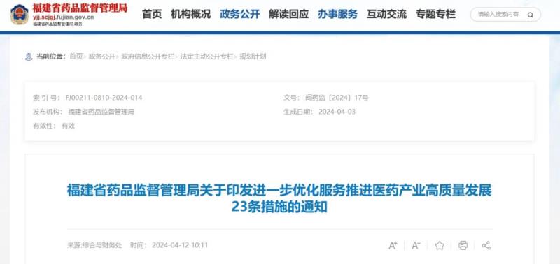 近日,福建省藥監(jiān)局發(fā)布《進(jìn)一步優(yōu)化服務(wù)推進(jìn)醫(yī)藥產(chǎn)業(yè)高質(zhì)量發(fā)展23條措施》,以提高藥品、醫(yī)療器械、化妝品審評審批效率和服務(wù)水平,促進(jìn)醫(yī)藥產(chǎn)業(yè)優(yōu)化升級和高質(zhì)量發(fā)展。