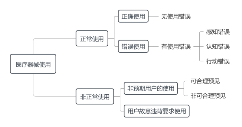 首先我們來明確一下到底什么是“使用錯誤”。醫(yī)療器械使用情況可分為正常使用非正常使用,“使用錯誤”屬于正常使用中的一種情形,即用戶按照說明書要求及常識慣例操作醫(yī)療器械,但卻因為感知或行動上的失誤等出現(xiàn)了異于注冊申請人或用戶預期的醫(yī)療器械效應,可能降低醫(yī)療器械的安全有效性。