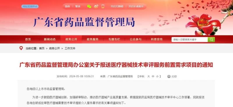 5月8日,廣東省藥監(jiān)局發(fā)布《關(guān)于報送醫(yī)療器械技術(shù)審評服務(wù)前置需求項目的通知》,以滿足重點項目及產(chǎn)品的技術(shù)審評提前介入服務(wù)需求,具體事項如下: