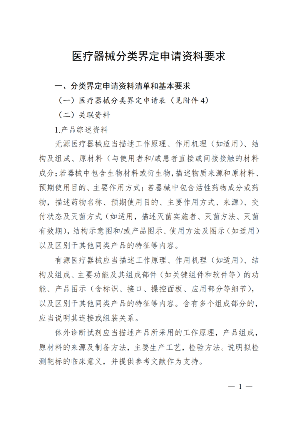 ↑ 醫(yī)療器械分類界定申請(qǐng)資料要求