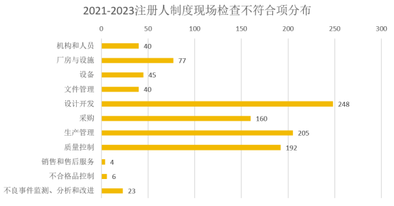 ↑ 2021-2023年注冊人制度現(xiàn)場檢查不符合項(xiàng)分布