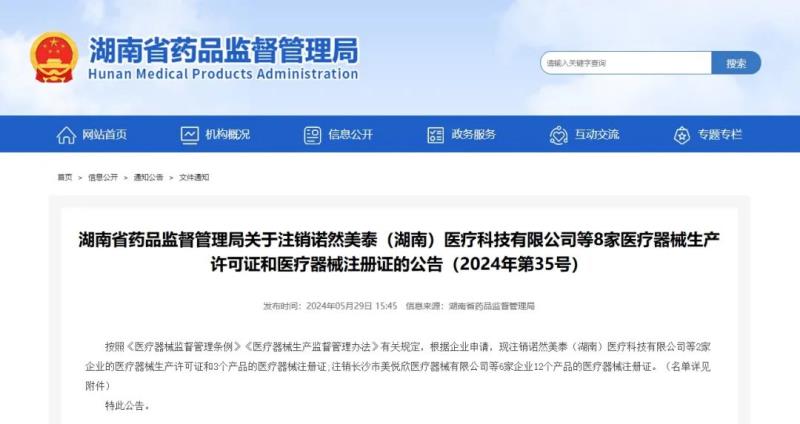 近日,湖南省藥監(jiān)局發(fā)布一則注銷公告,其中提到,按照《醫(yī)療器械監(jiān)督管理?xiàng)l例》《醫(yī)療器械生產(chǎn)監(jiān)督管理辦法》有關(guān)規(guī)定,根據(jù)企業(yè)申請(qǐng),該局已注銷諾然美泰(湖南)醫(yī)療科技有限公司等2家企業(yè)的醫(yī)療器械生產(chǎn)許可證和3個(gè)產(chǎn)品的醫(yī)療器械注冊(cè)證;注銷長(zhǎng)沙市美悅欣醫(yī)療器械有限公司等6家企業(yè)12個(gè)產(chǎn)品的醫(yī)療器械注冊(cè)證。我們通過(guò)查看附件發(fā)現(xiàn),本次注銷的產(chǎn)品中有多款重組膠原蛋白產(chǎn)品,比如重組膠原蛋白溶液、重組膠原蛋白凝膠、重組膠原蛋白液體敷料等,具體明細(xì)如下: