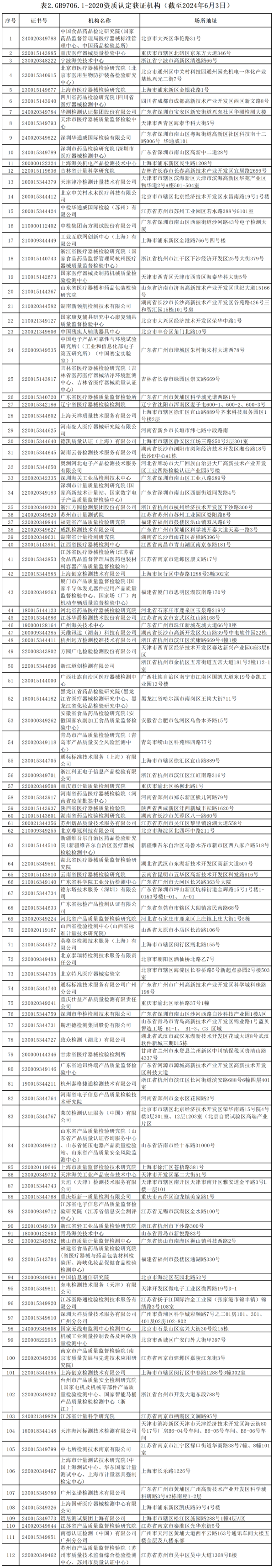 ↑ GB 9706.1-2020資質(zhì)認(rèn)定獲證機(jī)構(gòu)明細(xì)