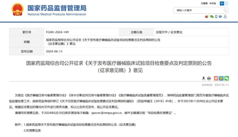 近日,國家藥監(jiān)局發(fā)布《關于發(fā)布醫(yī)療器械臨床試驗項目檢查要點及判定原則的公告(征求意見稿)》(以下簡稱《公告》),并向社會公開征求意見。