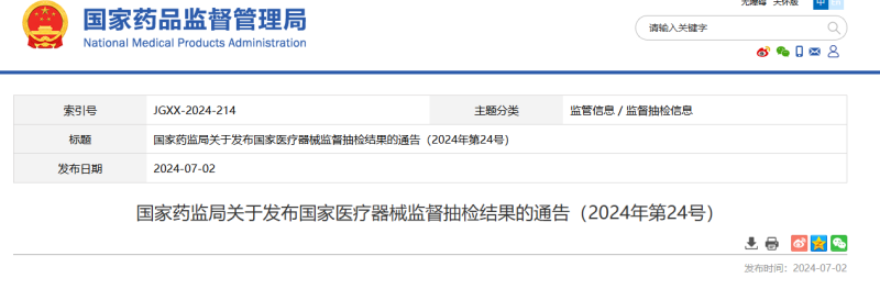 近日,國(guó)家藥監(jiān)局發(fā)布關(guān)于醫(yī)療器械監(jiān)督抽檢的結(jié)果通告: