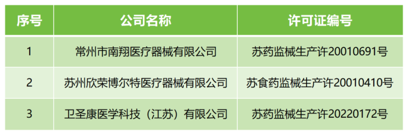 江蘇省藥品監(jiān)督管理局已根據(jù)《醫(yī)療器械生產(chǎn)監(jiān)督管理辦法》第六十四條第二款、《藥品醫(yī)療器械飛行檢查辦法》第二十五條規(guī)定,對(duì)3家企業(yè)采取暫停生產(chǎn)的風(fēng)險(xiǎn)控制措施。