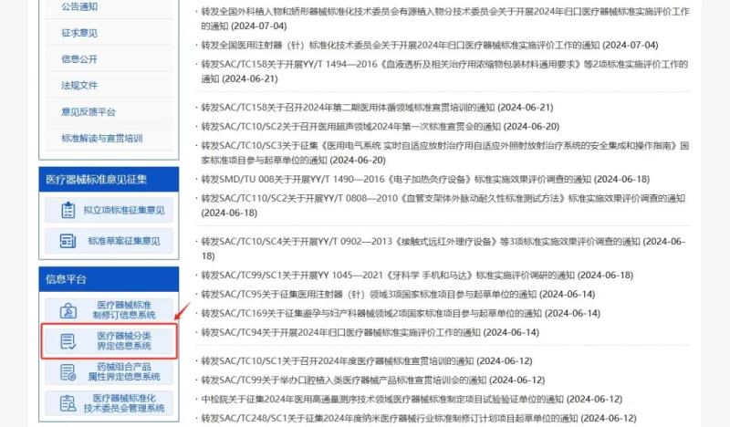 第三步,在頁面左下角“信息平臺”中進入“醫(yī)療器械分類界定信息系統(tǒng)”;