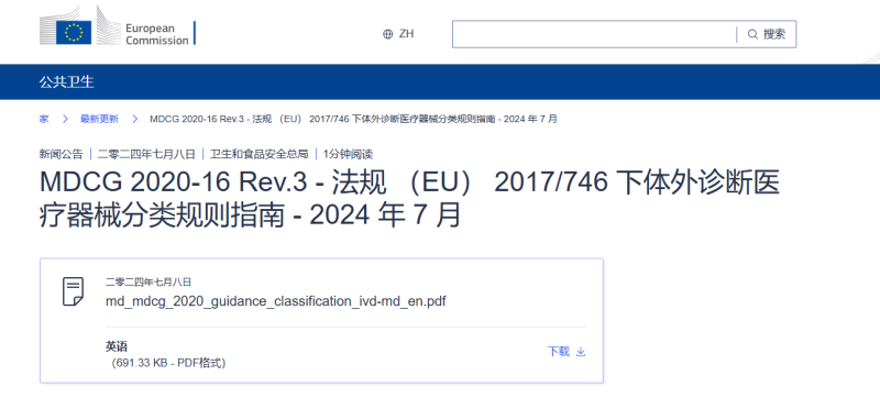注意!歐盟體外診斷醫(yī)療器械分類規(guī)則指南有更新