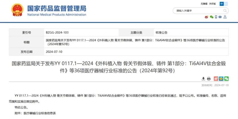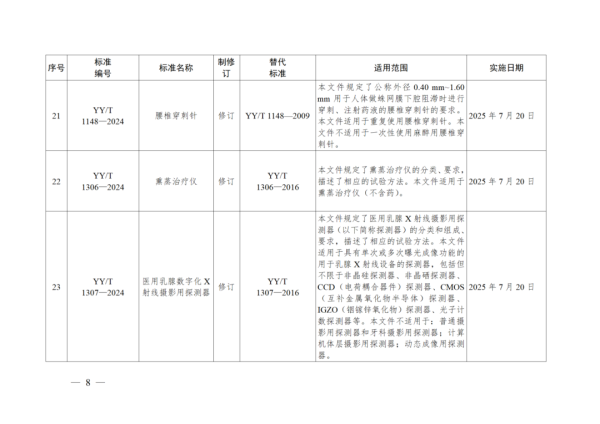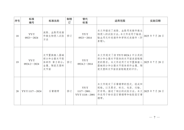 7月10日,國(guó)家藥監(jiān)局發(fā)布YY/T 1936-2024《定制式固定義齒》、YY/T 1937-2024《定制式活動(dòng)義齒》、YY/T 1932-2024《牙科學(xué) 膜片式無(wú)托槽正畸矯治器》等36項(xiàng)醫(yī)療器械行業(yè)標(biāo)準(zhǔn),其中24項(xiàng)為修訂,12項(xiàng)為修訂,最早自2025年7月20日起實(shí)施,具體清單如下: