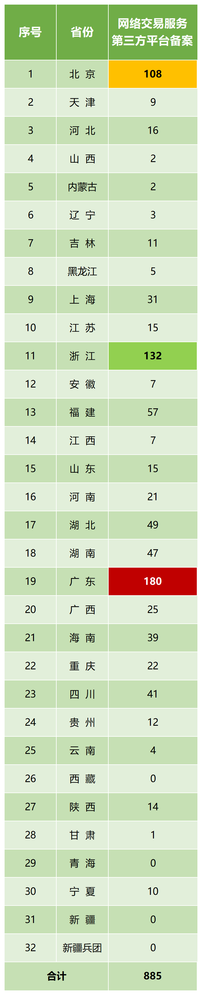 據(jù)國(guó)家藥監(jiān)局統(tǒng)計(jì),截至2024年6月30日,我國(guó)各省醫(yī)療器械醫(yī)療器械網(wǎng)絡(luò)交易服務(wù)第三方平臺(tái)數(shù)據(jù)如下: