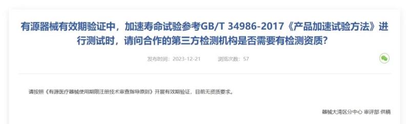 根據(jù)國(guó)家藥監(jiān)局醫(yī)療器械技術(shù)審評(píng)檢查大灣區(qū)分中心的答復(fù),加速老化試驗(yàn)?zāi)壳?strong style="margin: 0px; padding: 0px; outline: 0px; max-width: 100%; box-sizing: border-box !important; overflow-wrap: break-word !important;">無(wú)資質(zhì)要求,按照《有源醫(yī)療器械使用期限注冊(cè)技術(shù)審查指導(dǎo)原則》開(kāi)展有效期驗(yàn)證即可。