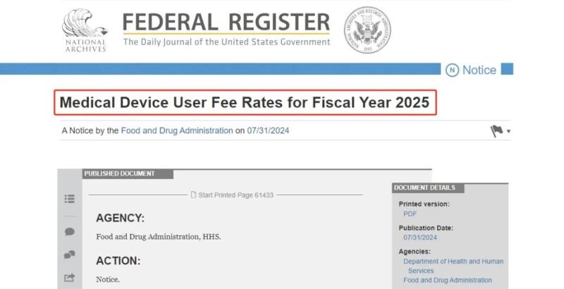 美國當?shù)貢r間7月31日,美國聯(lián)邦公報(Federal Register)公布FDA 2025財政年度(2024年10月1日至2025年9月30日)醫(yī)療器械收費標準→又雙叒叕漲了!