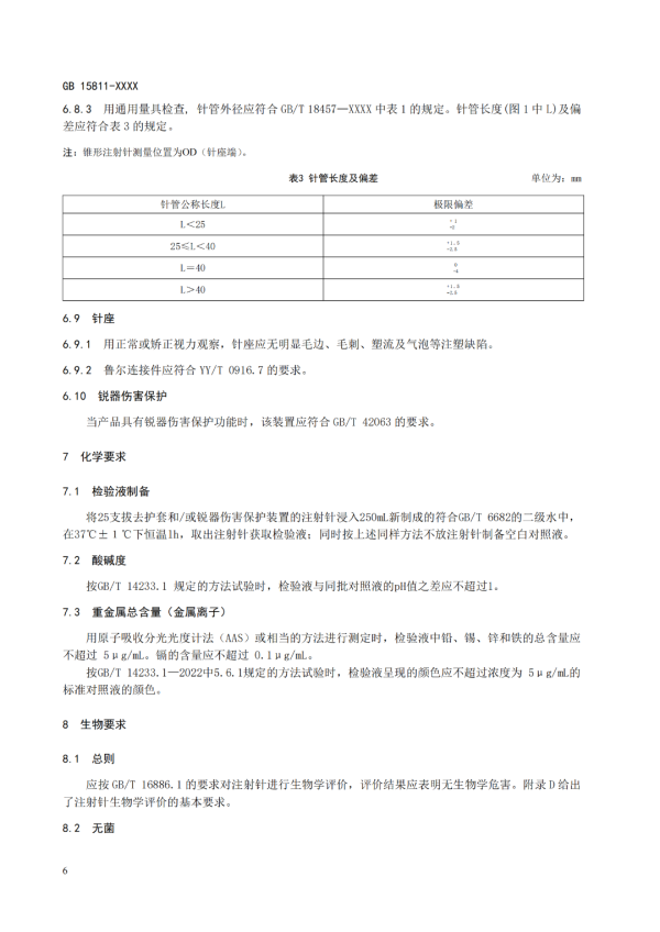 我們將《一次性使用無菌注射針》征求意見稿正文內(nèi)容以圖片形式轉(zhuǎn)載如下: