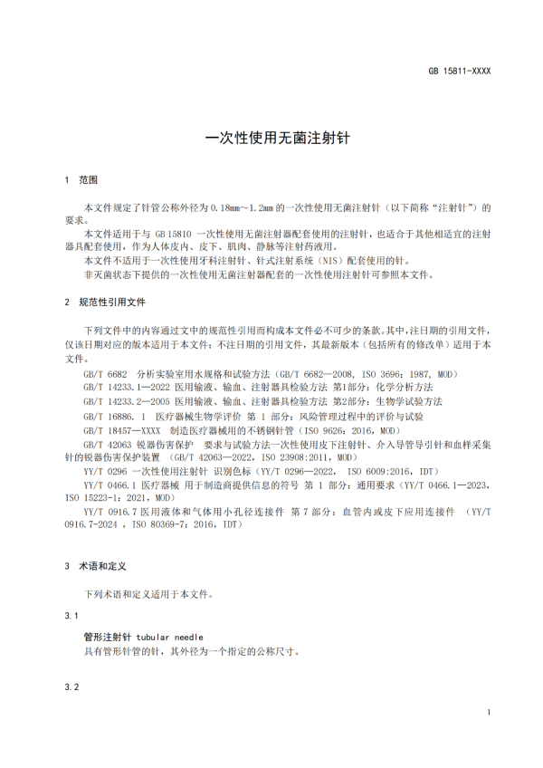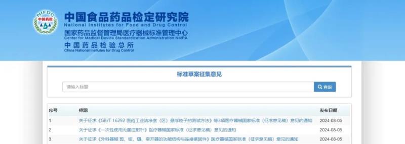 《一次性使用無菌注射針》等5項(xiàng)國(guó)家標(biāo)準(zhǔn)征求意見中