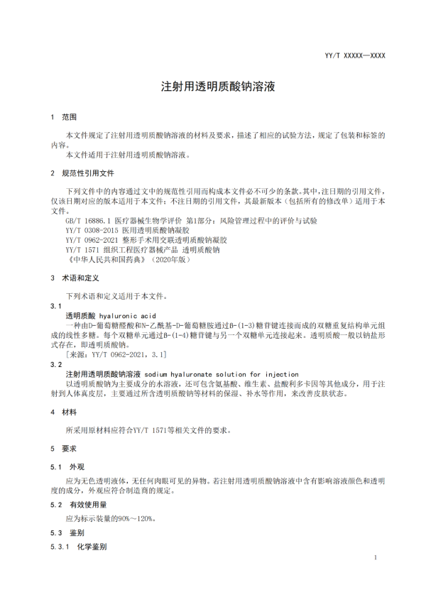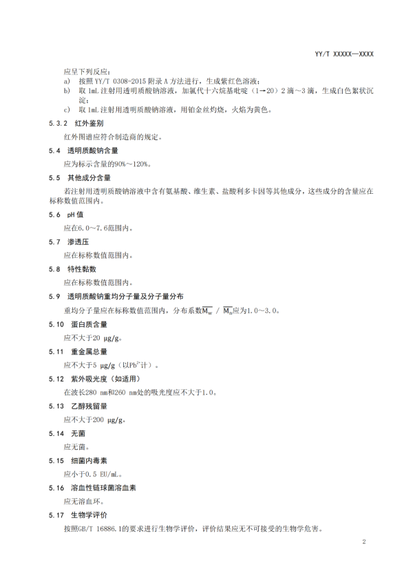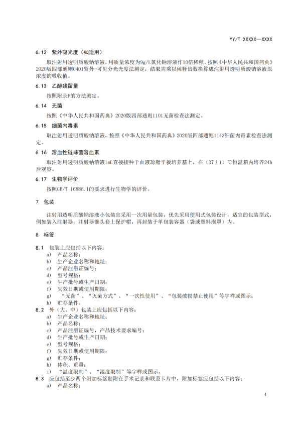醫(yī)療器械標(biāo)準(zhǔn) 透明質(zhì)酸鈉
