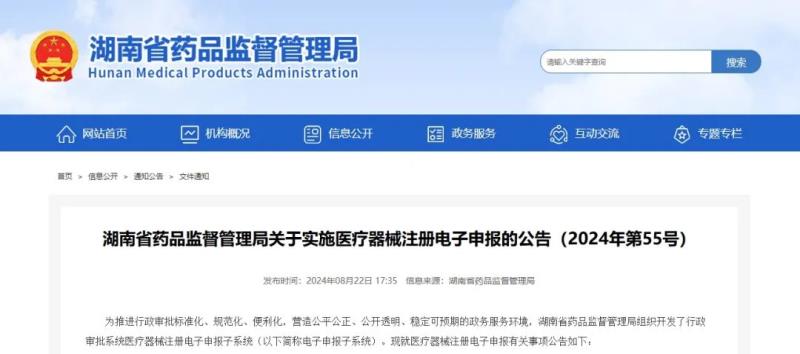 8月22日,湖南藥監(jiān)局發(fā)布《關于實施醫(yī)療器械注冊電子申報的公告(2024年第55號)》,具體事項如下:
