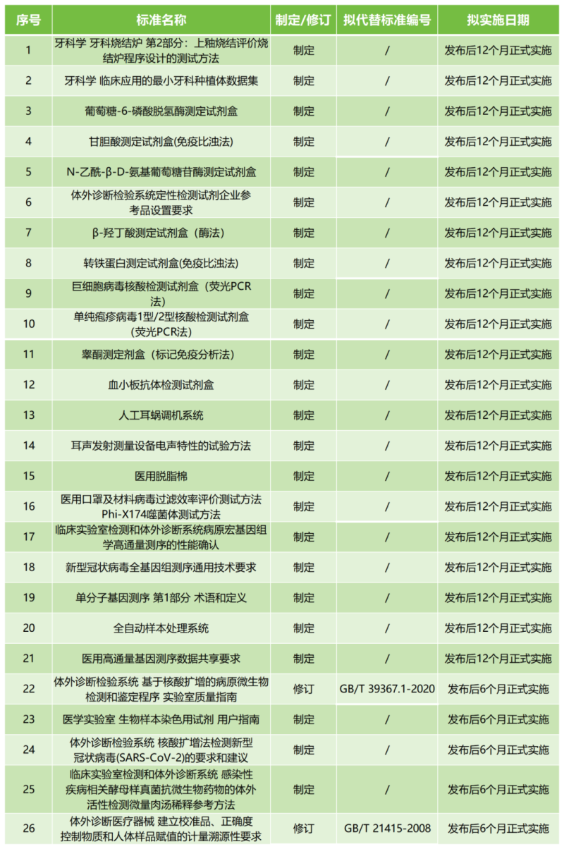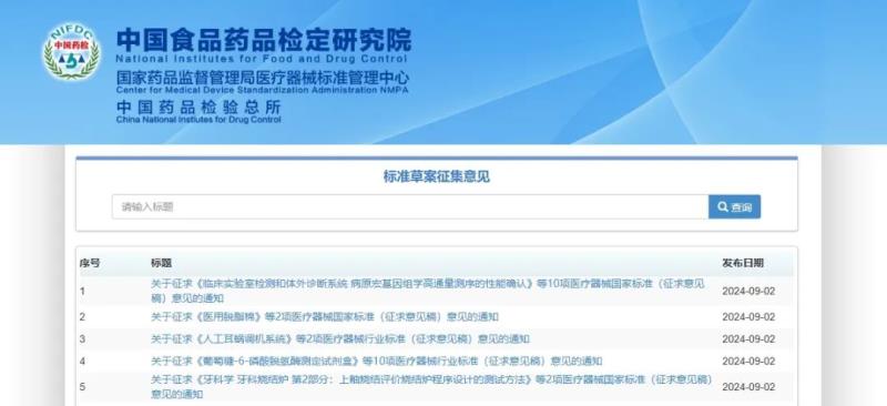 9月2日,國(guó)家藥監(jiān)局醫(yī)療器械標(biāo)準(zhǔn)管理中心發(fā)布幾則關(guān)于征求醫(yī)療器械行業(yè)標(biāo)準(zhǔn)意見的通知,通知顯示,近期共有26項(xiàng)標(biāo)準(zhǔn)形成了征求意見稿,具體明細(xì)如下:
