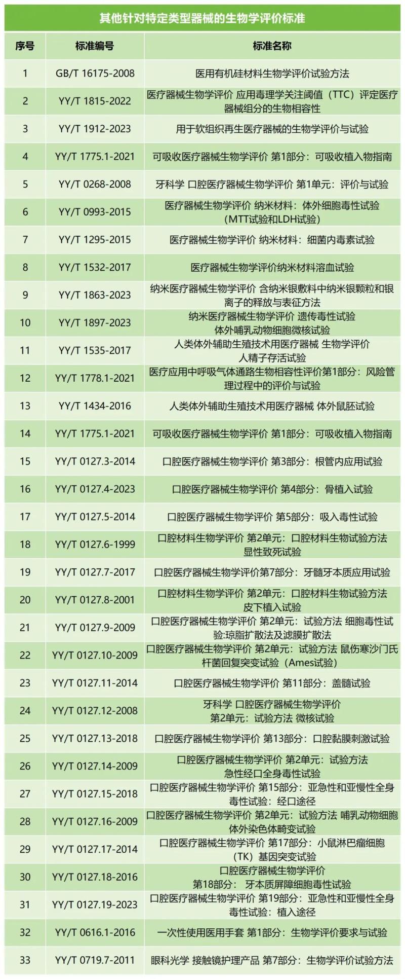 對(duì)于某些特定類型的醫(yī)療器械,可能需要遵循更具有針對(duì)性的評(píng)價(jià)標(biāo)準(zhǔn),例如,牙科器械應(yīng)考慮YY/T 0127口腔醫(yī)療器械生物學(xué)評(píng)價(jià),該標(biāo)準(zhǔn)涵蓋了牙科用醫(yī)療器械的生物學(xué)評(píng)價(jià)各個(gè)方面,包括根管內(nèi)應(yīng)用試驗(yàn)、吸入毒性試驗(yàn)、骨植入試驗(yàn)等。