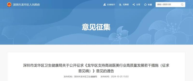 近日,深圳市龍華區(qū)衛(wèi)生健康局發(fā)布《龍華區(qū)支持高端醫(yī)美行業(yè)高質(zhì)量發(fā)展若干措施(征求意見稿)》(以下簡稱《若干措施》),并向社會(huì)公開征求意見。
