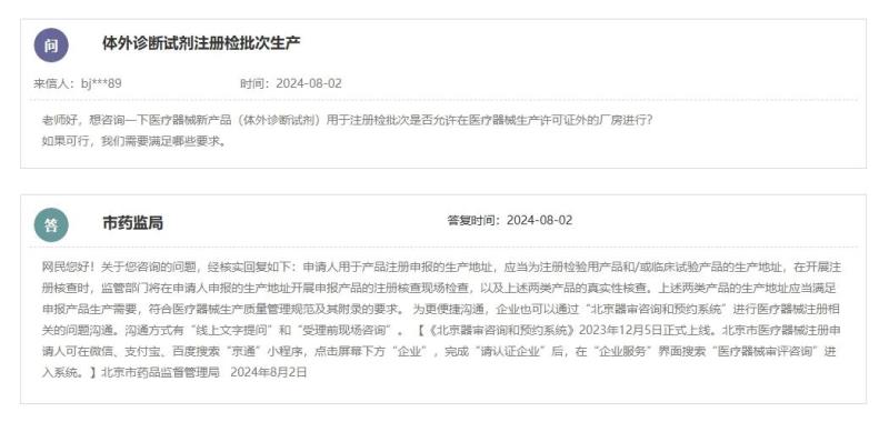 根據(jù)北京市藥監(jiān)局的答復(fù),申請(qǐng)人用于產(chǎn)品注冊(cè)申報(bào)的生產(chǎn)地址,應(yīng)當(dāng)為注冊(cè)檢驗(yàn)用產(chǎn)品和/或臨床試驗(yàn)產(chǎn)品的生產(chǎn)地址,在開(kāi)展注冊(cè)核查時(shí),監(jiān)管部門(mén)將在申請(qǐng)人申報(bào)的生產(chǎn)地址開(kāi)展申報(bào)產(chǎn)品的注冊(cè)核查現(xiàn)場(chǎng)檢查,以及上述兩類產(chǎn)品的真實(shí)性核查。上述兩類產(chǎn)品的生產(chǎn)地址應(yīng)當(dāng)滿足申報(bào)產(chǎn)品生產(chǎn)需要,符合醫(yī)療器械生產(chǎn)質(zhì)量管理規(guī)范及其附錄的要求。