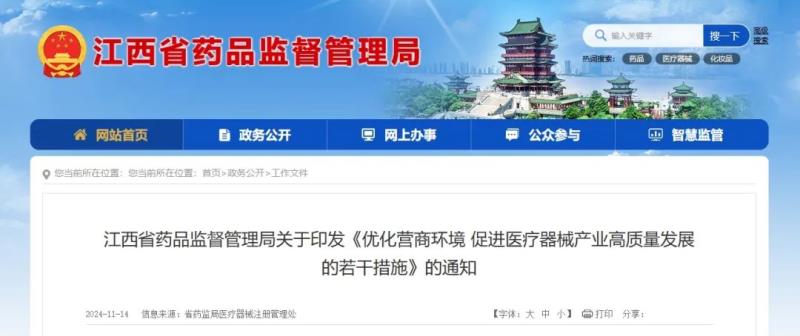 11月14日,江西省藥監(jiān)局發(fā)布《優(yōu)化營商環(huán)境 促進(jìn)醫(yī)療器械產(chǎn)業(yè)高質(zhì)量發(fā)展的若干措施》(以下簡稱《若干措施》),并宣布《江西省藥品監(jiān)督管理局關(guān)于印發(fā)〈優(yōu)化營商環(huán)境 促進(jìn)醫(yī)療器械產(chǎn)業(yè)高質(zhì)量發(fā)展“十三條”惠企政策〉的通知》(贛藥監(jiān)規(guī)〔2022〕7號)和《江西省藥品監(jiān)督管理局關(guān)于做好優(yōu)化營商環(huán)境 促進(jìn)醫(yī)療器械產(chǎn)業(yè)高質(zhì)量發(fā)展“十三條”惠企政策實(shí)施工作的通知》(贛藥監(jiān)規(guī)〔2022〕10號)同時(shí)廢止。