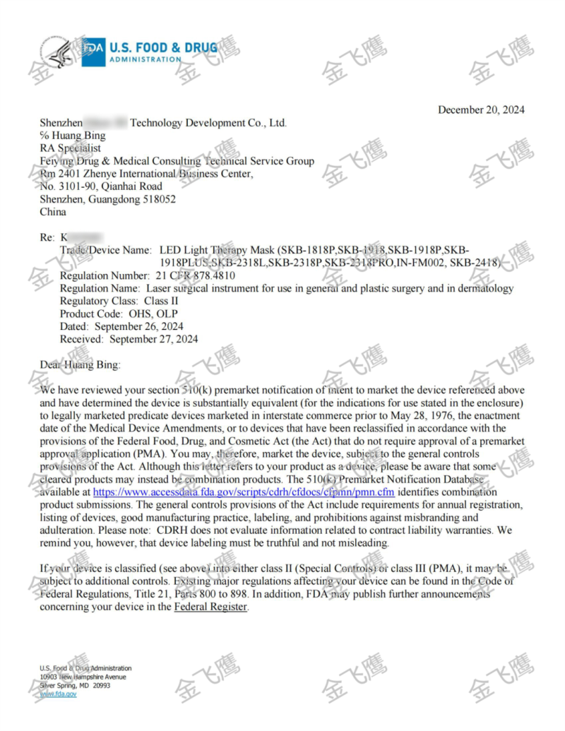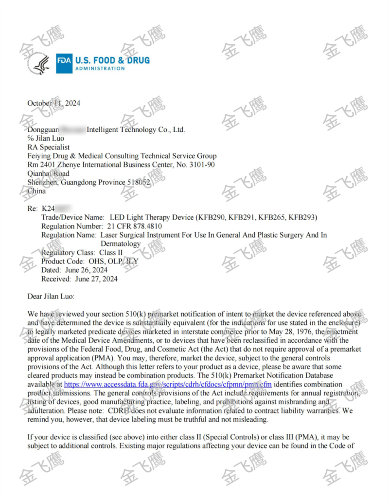 捷報頻傳丨金飛鷹成功輔導(dǎo)企業(yè)獲批紅藍光面罩510(k)