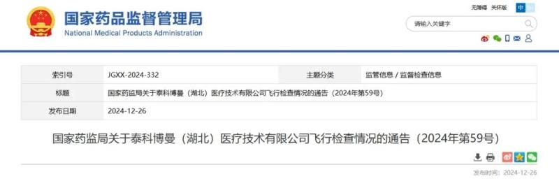 12月26日,國家藥監(jiān)局發(fā)布通告稱,該局組織檢查組對**(湖北)醫(yī)療技術(shù)有限公司進(jìn)行飛行檢查,發(fā)現(xiàn)該企業(yè)質(zhì)量管理體系主要存在以下缺陷: