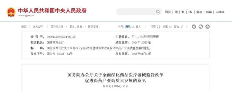 國務(wù)院辦公廳:全面深化藥品醫(yī)療器械監(jiān)管改革,24條新舉措明確→