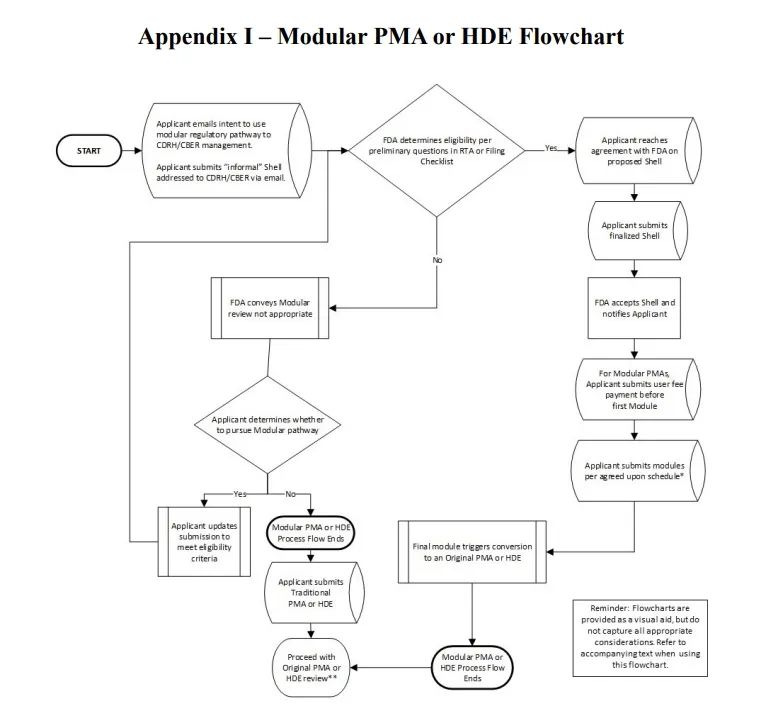 總的來說,該文件詳細(xì)介紹了模塊化審查程序的具體步驟、適用范圍、定義、用戶費用考慮以及提交模塊化PMA或HDE的行業(yè)指導(dǎo),附錄后還包含了常見問題解答。